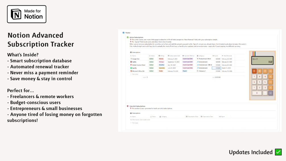 Advanced Subscription Tracker – The Ultimate Notion Tool to Stay Organized! πŸš€