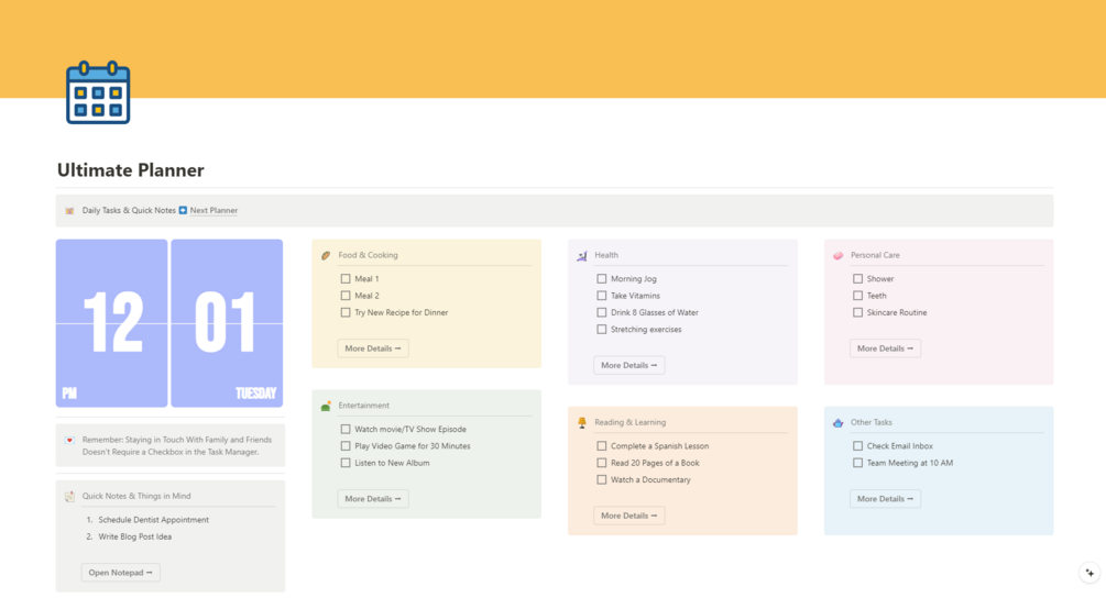 Notion Ultimate Planner Template (Daily - Weekly - Monthly - Yearly) Planners