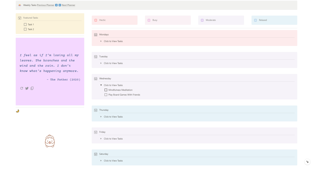 Stay on top of everything with this all-in-one Notion planner. Whether you're managing tasks, setting goals, or planning your weekβthis template has you covered.